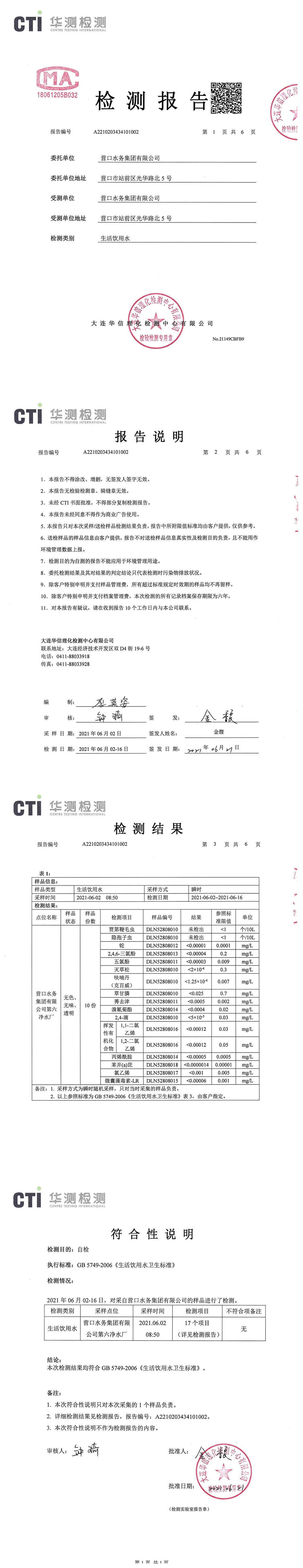 2021年2季度水質公示報告